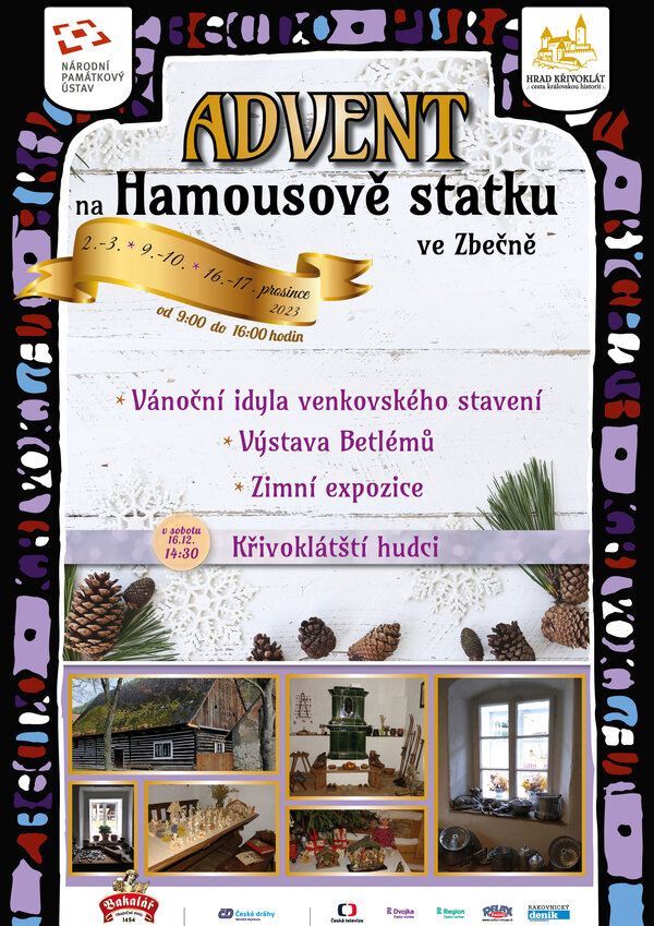 Během tří adventních víkendů mohou návštěvníci zažít vánoční idylu Hamousova statku. Její nedílnou součástí bude výstava betlémů a zimní expozice stavení. Návštěva je možná vždy od 9 do 16 hodin.